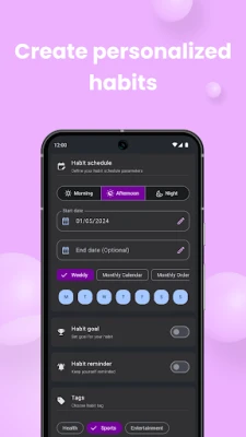 ⢠Weekly, Monthly, Yearly Schedules: Customize habits for specific days, weeks, or months.
