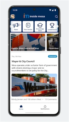 Inside Mesa features & functionality: - Follow the latest company news, events, leadership messages, and other content relevant and of interest to you. - Browse content submitted by Intercontinental Terminals Company users and share your feedback through comments and likes. - Submit your own content – including photos, videos, stories, and more! - Play featured quizzes and contests. - Receive notifications of new messages and social activity. - Connect with others and become an City of Mesa brand ambassador!
