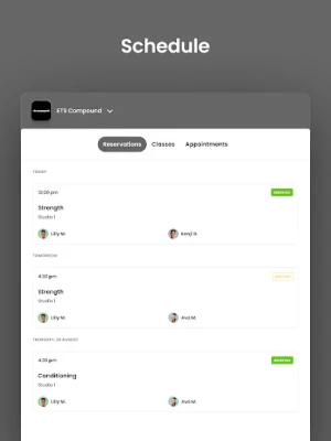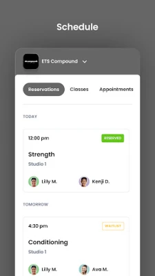 For members of ETS Compound to reserve their place in a class, sign up for gym events, and general account management like updating headshots and credit card on file.