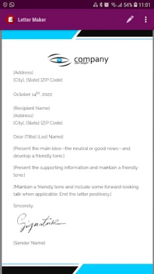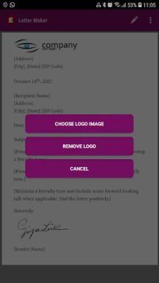 Letter Maker app settings allow you to use the formatting of business letters in accordance with your style of letter writing; customize the letterhead by inserting your Logo image.