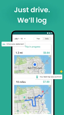 • Drive with the our mileage tracker running in the background and your trips are logged automatically