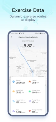 3.记录GPS运动,支持跑步、骑行、健走和爬山运动方式,支持后台运行,可记录运动时间、运动距离、配速、步频、步数等数据。